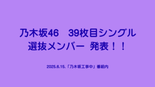 乃木坂46 乃木坂46 39枚目シングル 選抜メンバー発表!! 2025年6月15日深夜放送の「乃木坂工事中」のラストに、次のシングルの選抜メンバーの発表がありました。今回選抜された... 2025.06.16 乃木坂46