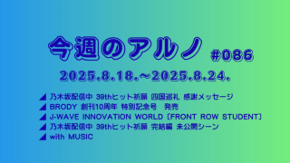 アルノ 今週のアルノ🦎#086 2025.8.18.~8.24. 🎵 乃木坂46公式X 「39thシングル ヒット祈願 四国八十八か所巡礼達成 感謝メッセージ」(202... 2025.08.21 アルノ