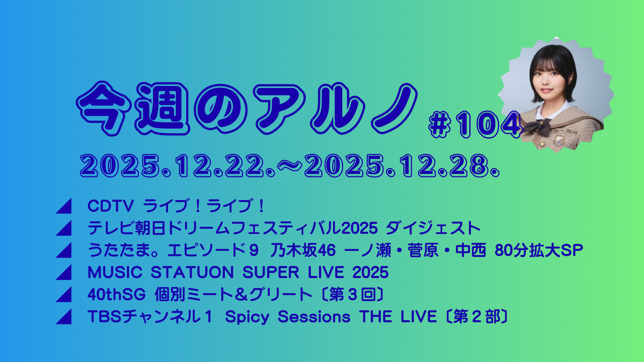 🎵 うたたま。エピソード9 乃木坂46 一ノ瀬美空・菅原咲月・中西アルノ 80分拡大SP(2025.12.25.放送)